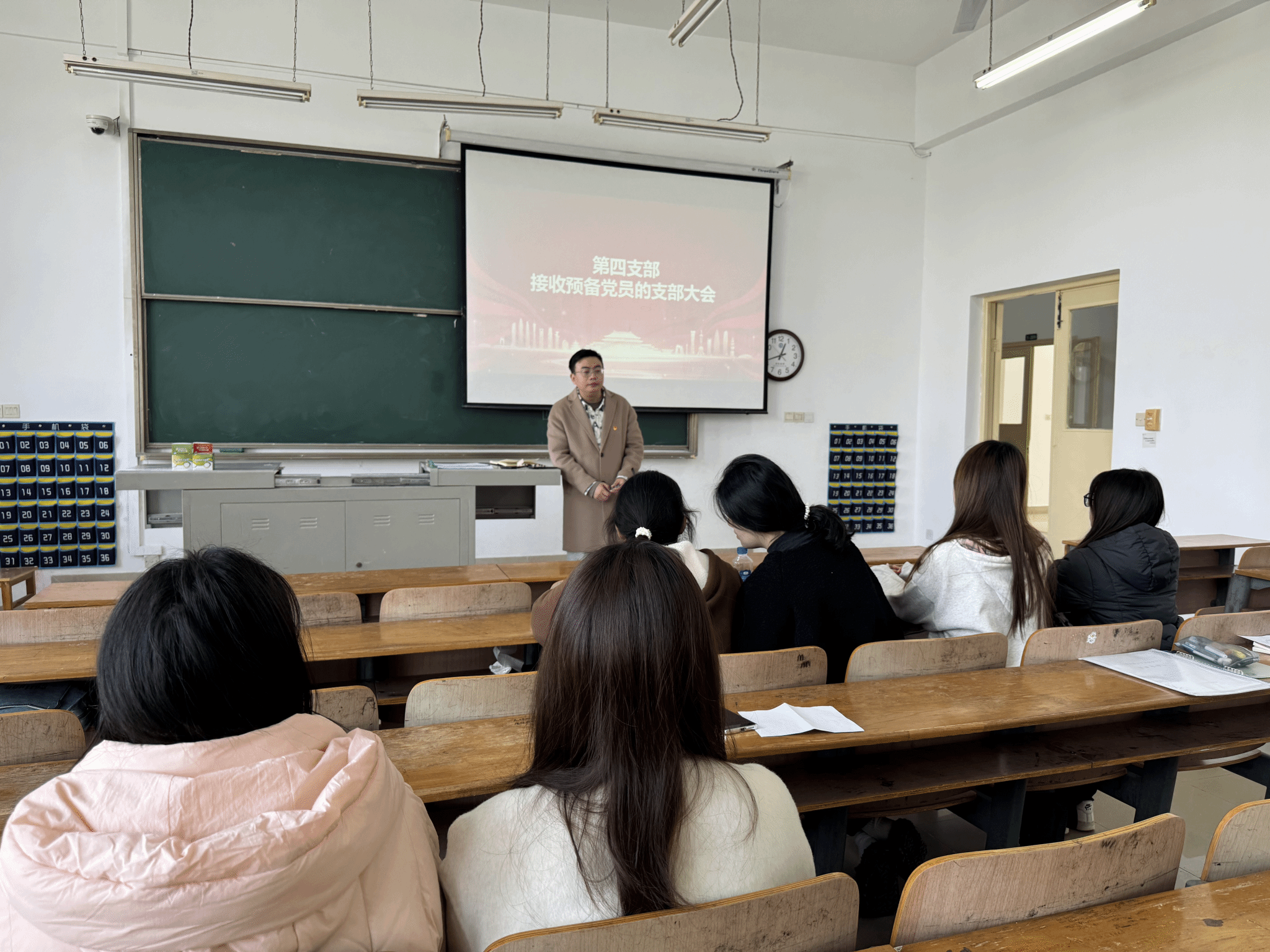 11月27日中午12时10分,商学院学生第四党支部于1教205教室召开接收预备党员支部大会,为党组织吸纳青年力量、筑牢基层堡垒。会议由支部委员杨洋同志主持,全体党员出席,全程严格遵循《中国共产党发展党员工作细则》,规范有序、氛围庄重。