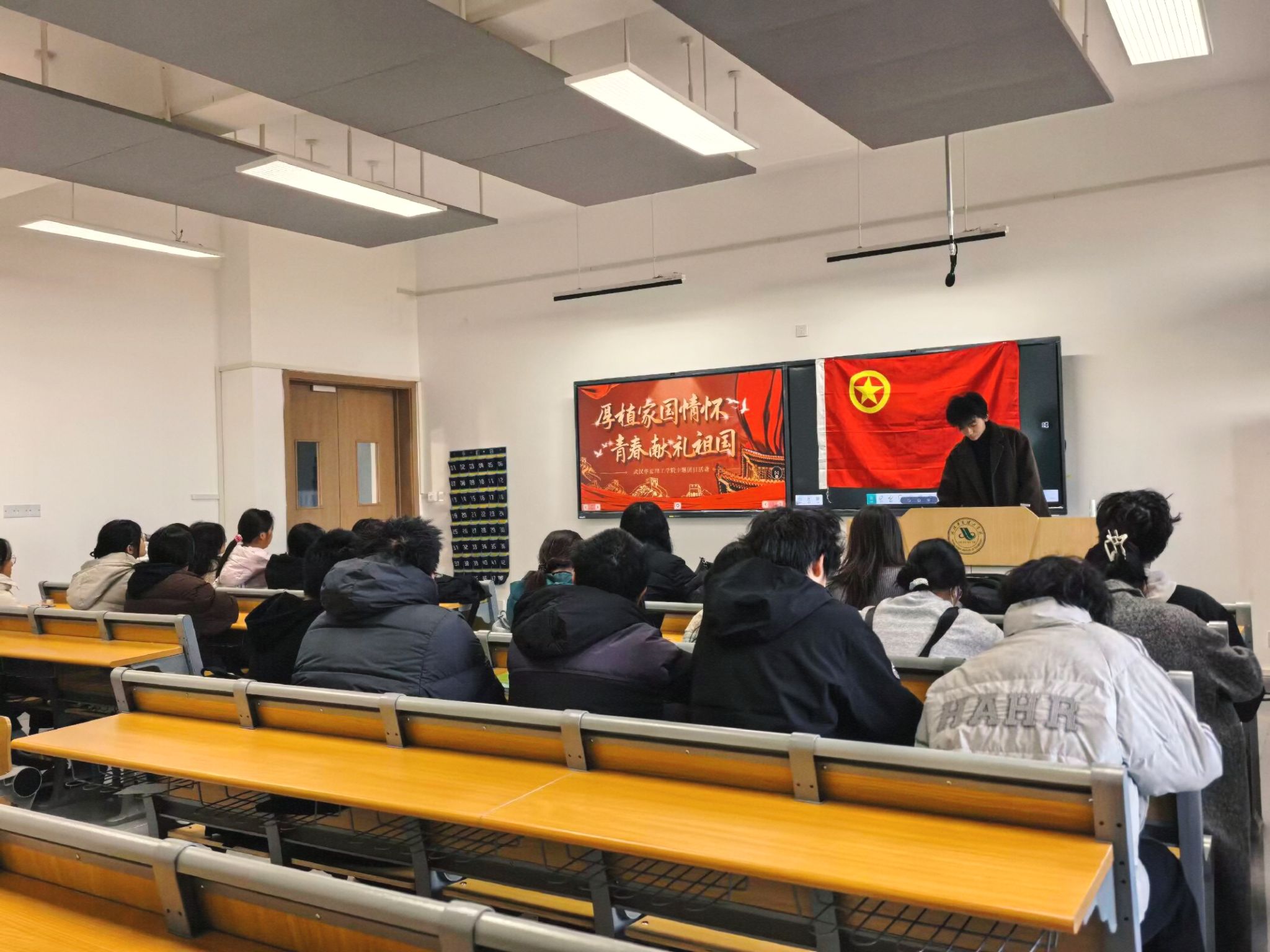 为引导青年深刻感悟家国情怀的时代内涵,以青春之力为中华民族伟大复兴贡献力量,2025年11月27日,beat365官方网站商学院电商1252团支部于梧桐湖校区C207教室开展“厚植家国情怀,青春献礼祖国”主题团日活动。本次活动由学习委员胡明赫主持,支部全体成员积极参与,共同接受了一场内容丰富、形式生动的爱国主义教育。