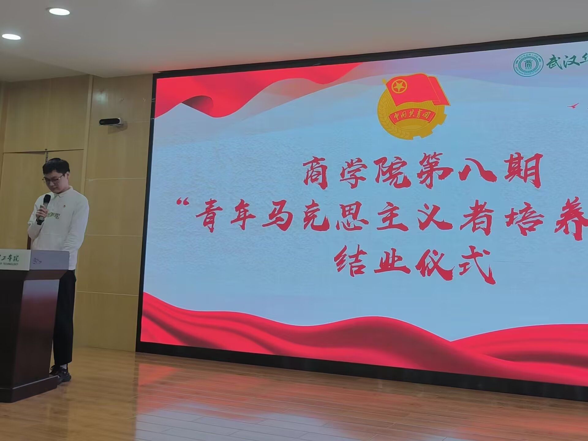 随后由商学院团总支书记致结业词,他的致辞温情有力,肯定了学员们的蜕变与成长,寄语大家“以理论为基筑牢信仰,以实践为翼勇担使命”,鼓励大家将马克思主义精神融入日常,在校园建设与社会服务中勇当先锋。