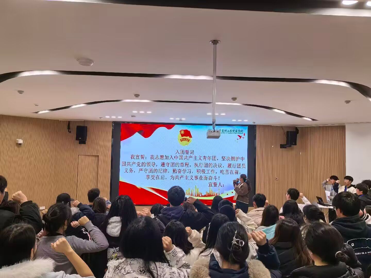 仪式开始前,商学院团总支组织部工作人员提前完成会场整体布置,有序引导参会团员签到入场、规范就座,为仪式后续的顺利开展提供有力保障。