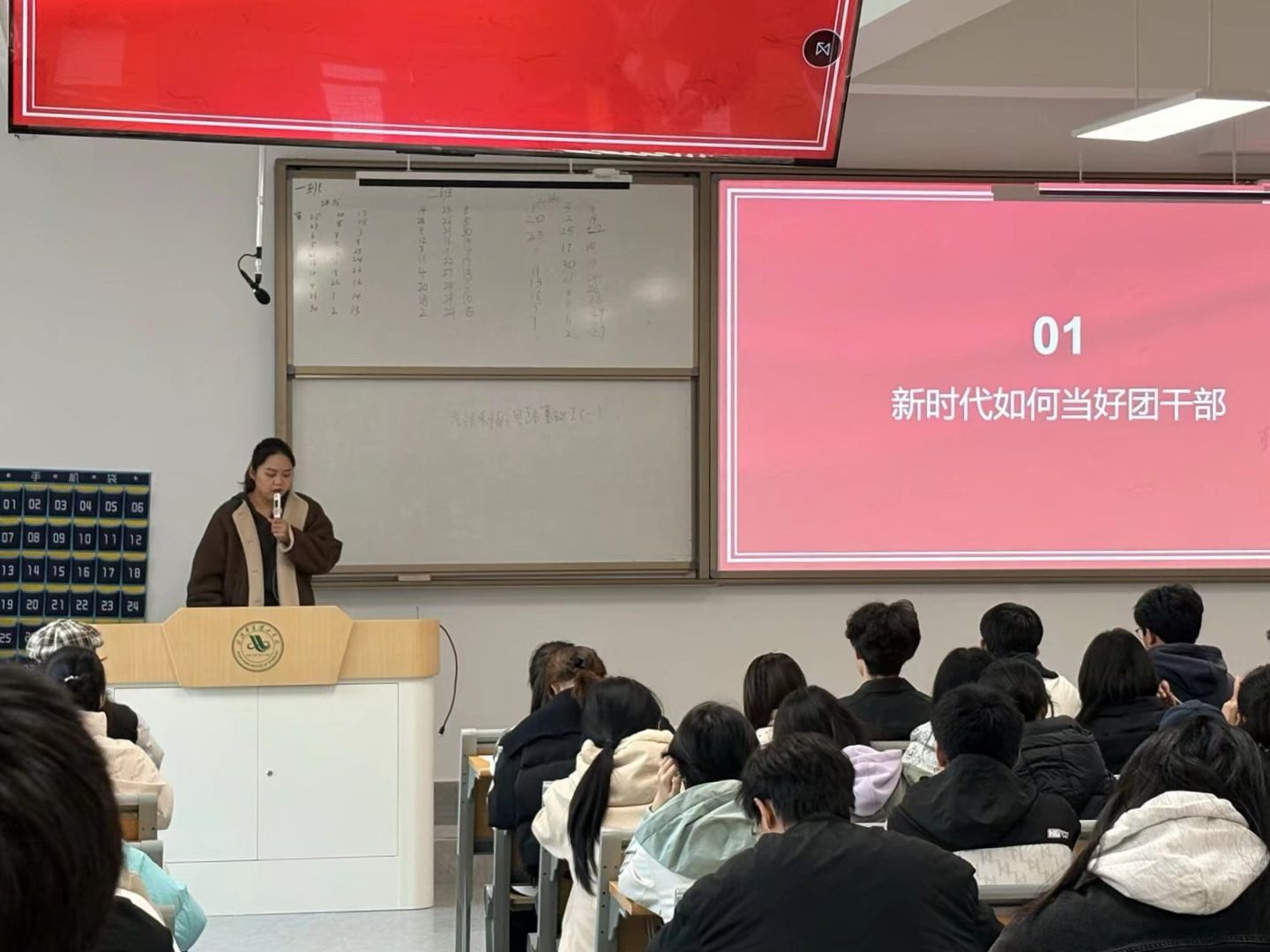 第二讲紧扣能力建设,明晰成长路径。商学院团总支副书记张倩倩老师以“如何做一名优秀的学生干部”为题,从角色定位、必备素质、能力提升等方面展开讲解。她明确,学生干部既是“优秀代表”,更是“服务员”“助理员”,需秉持品学兼优、德才兼备的优秀品质,锤炼策划、沟通、协调等核心能力,同时学会平衡学习与工作。此外,她还针对当前团学组织在制度建设、工作创新等方面的问题,提出完善制度、强化培训等改进方向。