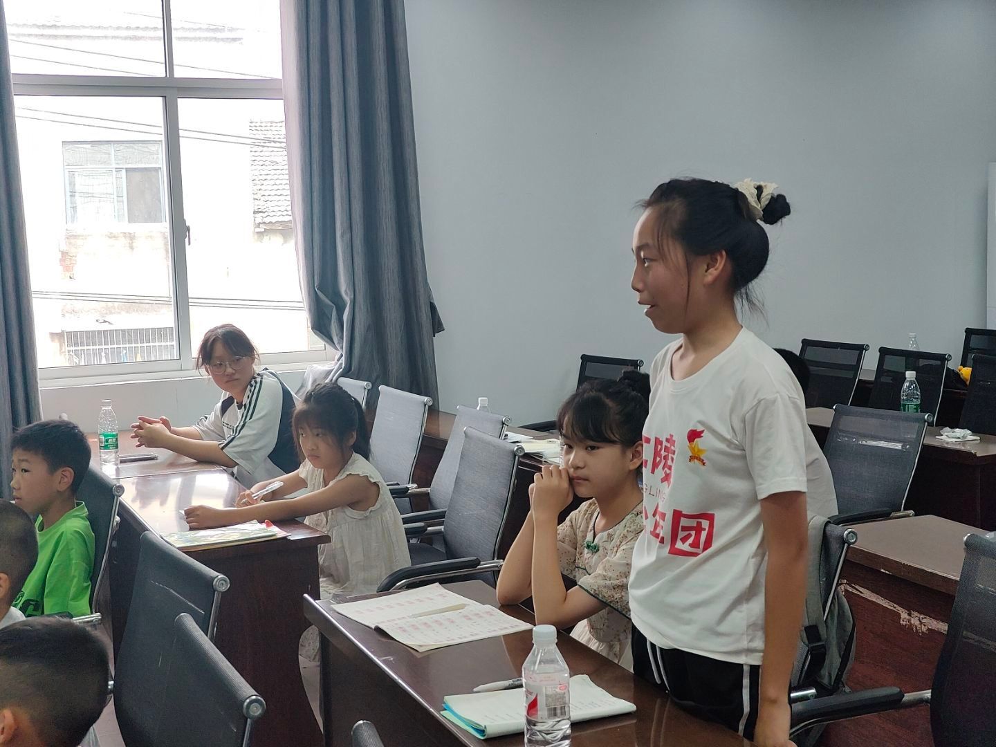 活动以趣味导入拉开序幕。实践队成员们提前在教室角落、书架后藏好“情绪卡片”。让孩子们在轻松的互动中,自然走进了“情绪管理”的世界。志愿者范晨毓以“情绪小怪兽”为切入点,通过生动形象的讲解、互动游戏和情景模拟等方式,引导孩子们认识快乐、悲伤、愤怒、恐惧等常见情绪,有利于孩子们建立对自身情绪的基础认知框架,促进其对不同情绪的精准识别能力。同时还耐心细致地讲解了不同情绪的特点及对行为的影响,借助“踢猫效应”小故事,让孩子们明白不良情绪的传染性,推动了孩子们对情绪传导规律的理解,展现了实践队将抽象心理知识转化为具象案例的教学智慧。“情绪猜猜猜”游戏环节有效推动了活动氛围走向高潮。孩子们被划分为若干小组,各组成员取出“情景卡片”描述场景。志愿者范晨毓借此引导大家深入思考情绪对人的影响,并再次结合“踢猫效应”小故事,使孩子们清晰认识到不良情绪的传染性,进一步推动了对情绪影响的理解与认知。随后,志愿者范晨毓分享了合理发泄情绪法、自我激励法等实用的情绪调节方法,有利于孩子们在面对情绪波动时掌握科学的应对工具,促进了其情绪调节能力的系统性提升。本次课程的帷幕,最终在志愿者范晨毓那句“做自己情绪的主人,让心灵在七色花海中自由徜徉”的寄语中缓缓落下,余韵悠长。
