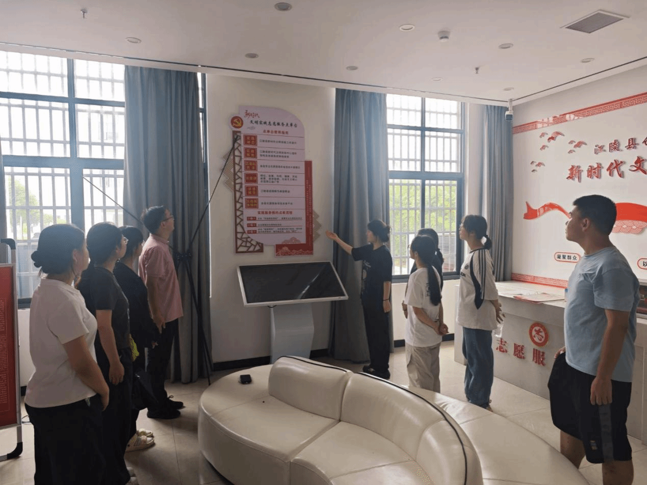 实践队首站走进白马寺镇青年之家,这座集当地青年成长、交流与奉献于一体的重要阵地。它坐落于镇中心,场地宽阔,功能齐全。走进其中,既有院线电影放映厅丰富青年们的休闲时光;也有学雷锋志愿站为社区家人们送去关怀;还有图书阅览室满足青年们的阅读需求。最令人动容的白马展览馆中,镇域发展的历史长卷徐徐展开,进一步坚定了队员们“把课堂搬进乡土”的教学理念。