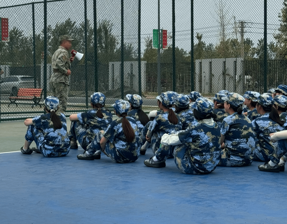 全体新生身着整齐的作训服,以饱满的精神状态,端坐在微湿的草坪上,目光齐刷刷地投向队列前方。训练场上,唯有红旗在风中猎猎作响,气氛庄重而专注。