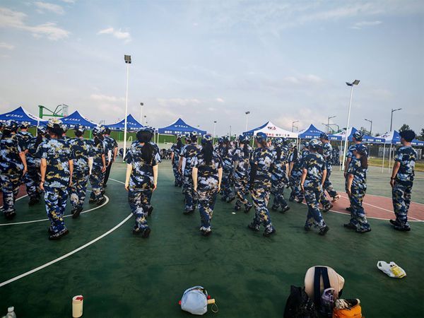 夏日炎炎,热浪席卷华夏学院校园,室外温度持续攀升,但2025级新生们的参训热忱丝毫未受影响。他们身着整齐的迷彩服,以挺拔的身姿、饱满的精神状态投身于站军姿、队列训练等各项科目之中,用青春的汗水在训练场上书写着坚韧与执着。