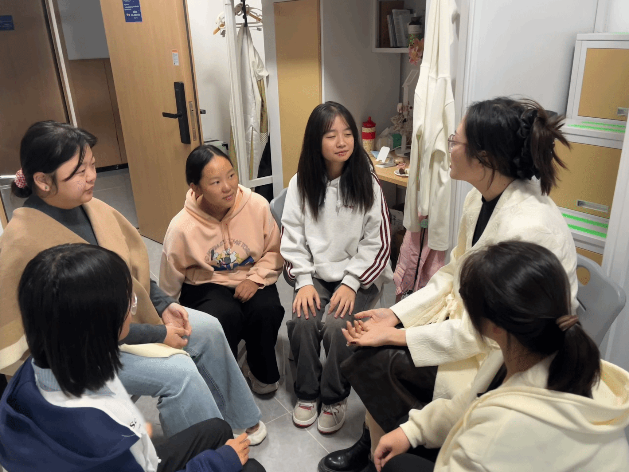 随后,交流环节围绕“校区学习适应”与“生活困惑解答”两大核心展开。学生代表们结合入学以来在梧桐湖校区的体验,踊跃提出课程学习方法、校区资源利用、社团活动参与等方面的疑问,尤其关注“如何利用校区资源提升新媒体实践能力”“学习生活的注意事项”等具体问题。姚老师认真倾听每一位代表的心声,针对大家的困惑逐一细致解答,不仅分享了实用的学习规划建议,还贴心叮嘱了校区生活中的细节要点,让同学们感受到来自班主任的暖心关怀。