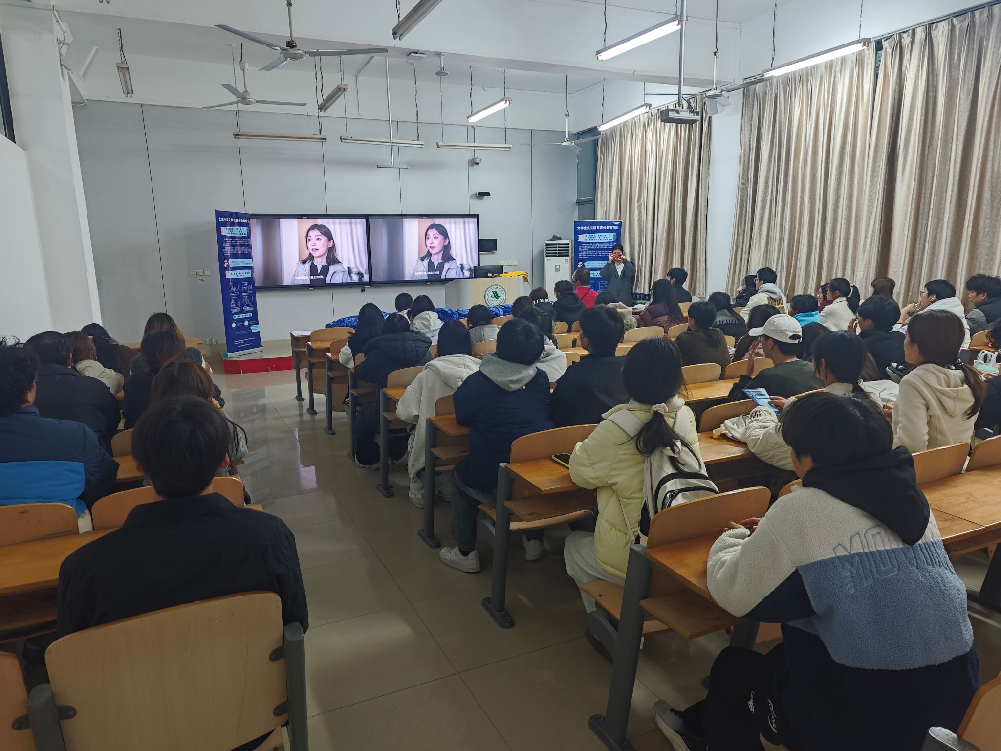 12月2日晚,在教学楼2-202,beat365《生命只有一次,防艾始于心》主题观影活动在此举行。师生共同观看防艾宣传视频,在真实故事的触动中感悟生命真谛,通过互动问答深化防艾认知,将“爱护自己、珍惜身边人”的理念根植于心。本次活动由校青春同伴社和同伴教育团队共同组织。