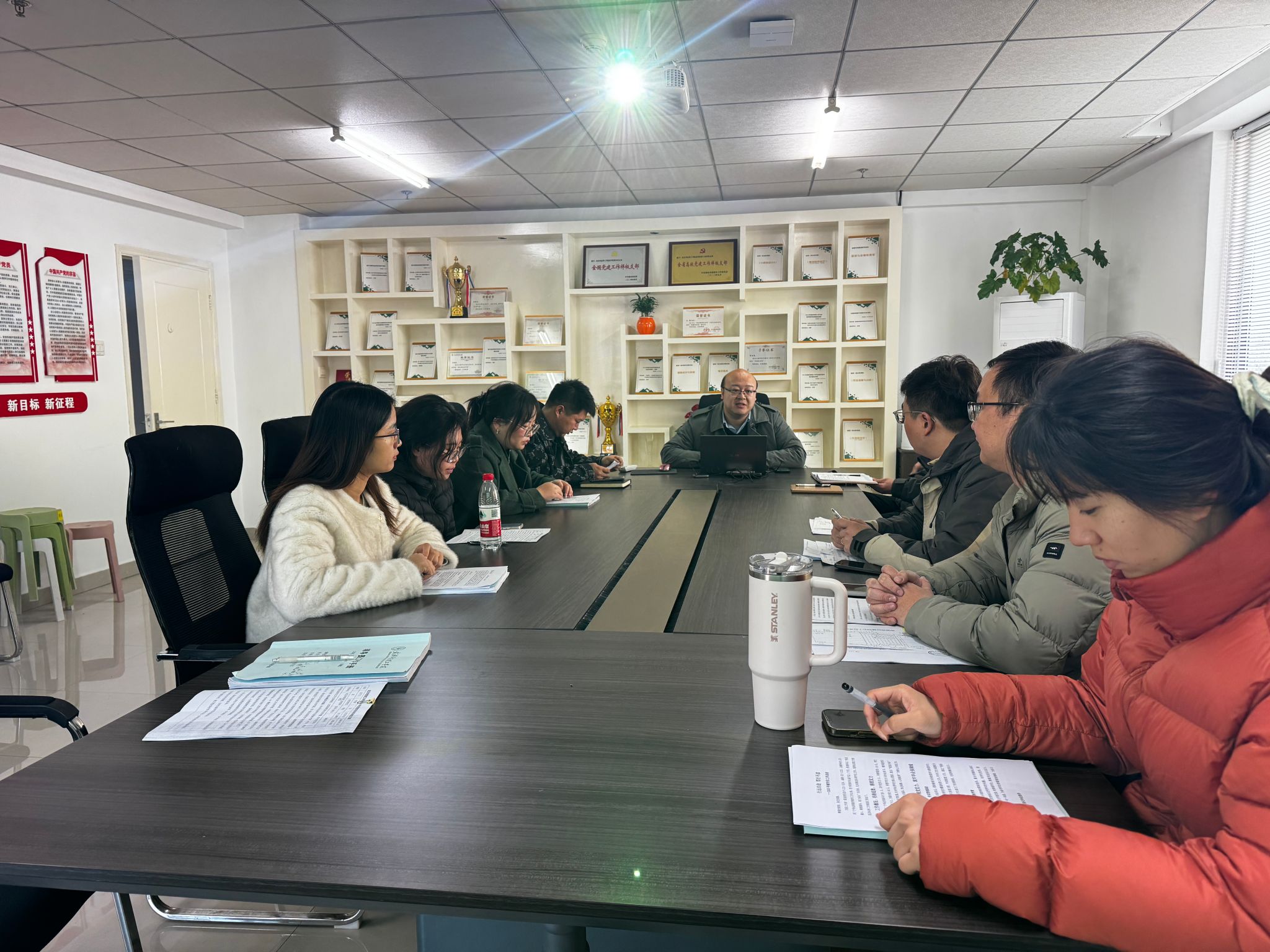 党总支副书记孙文胜作总结讲话。他充分肯定全体辅导员为学院发展作出的贡献,强调辅导员是学生成长成才的"人生导师"和"知心朋友",是落实立德树人根本任务的关键力量。他对后续工作提出三点要求:一要提高政治站位,持续深化习近平新时代中国特色社会主义思想学习,将思想政治教育贯穿学生成长全过程;二要夯实工作基础,完善"日常管理+特色项目"工作体系,重点推进学风建设与就业创业指导一体化;三要锤炼过硬本领,争做"政治强、业务精、纪律严、作风正"的高素质辅导员,以"时时放心不下"的责任感守护学生成长。他表示,学院将进一步加强辅导员队伍建设保障,优化考核激励机制,为辅导员职业发展搭建更广阔平台,共同推动商学院学生工作再上新台阶。