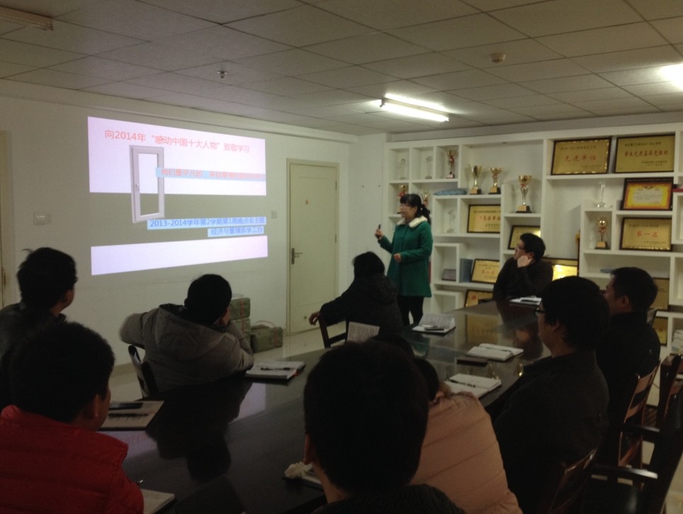 根据前期安排,本周五例会上首先由13级辅导员郭定芳做关于感恩教育的主题交流活动,选取的主题紧扣2014年感动中国十大人物的事迹与精神,结合开学前后同学们的所思所想,精选案例把“感恩”这个经典的话题诠释得更贴近生活、贴近校园。