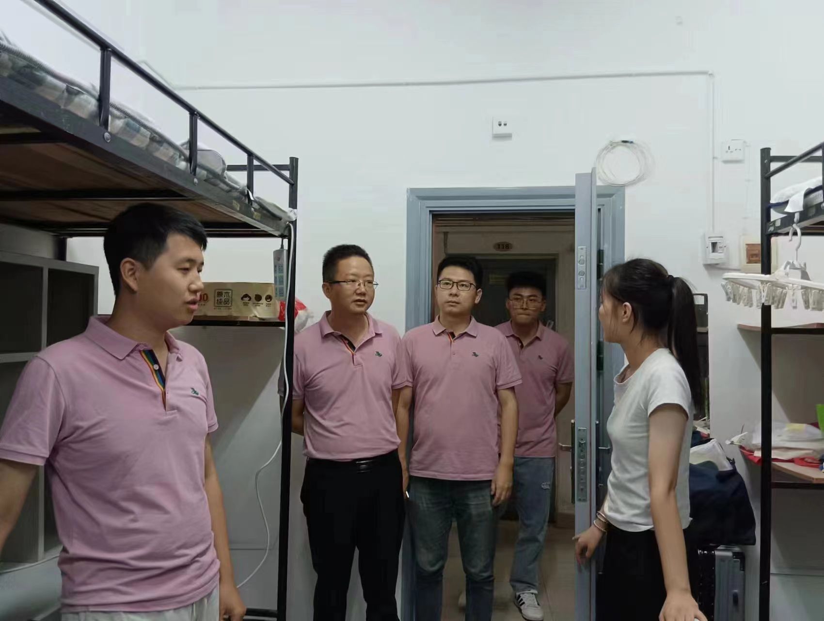 为了解专升本新生入学情况及宿舍入住情况,帮助学生们转变思想,尽快适应新环境、新生活。9月2日晚,商学院党总支书记孙文胜,组织员杨柳及新生辅导员何啟、张志欣、杨斗,深入学生寝室走访,为同学们送去学院的关怀与温暖。