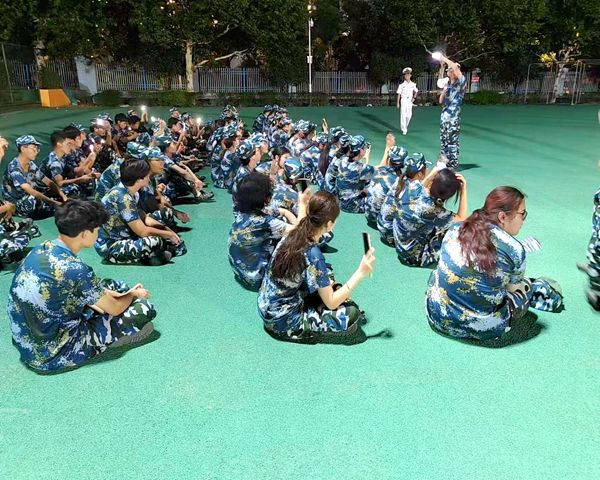 一轮皎眨白月挂在空中,天涯共此时!同学们的日光在月亮上相遇,将思念遥寄故乡、亲友,脸上洋溢着幸福与快乐!与此同时,学长、学姐、教官以及辅导员带着同学们拉歌,"请把新征程号角吹响,强军日标召唤在前方,国要强,我们就要担当……"句句军歌晾亮,伴随着美好的月色,充满了激情与感动。