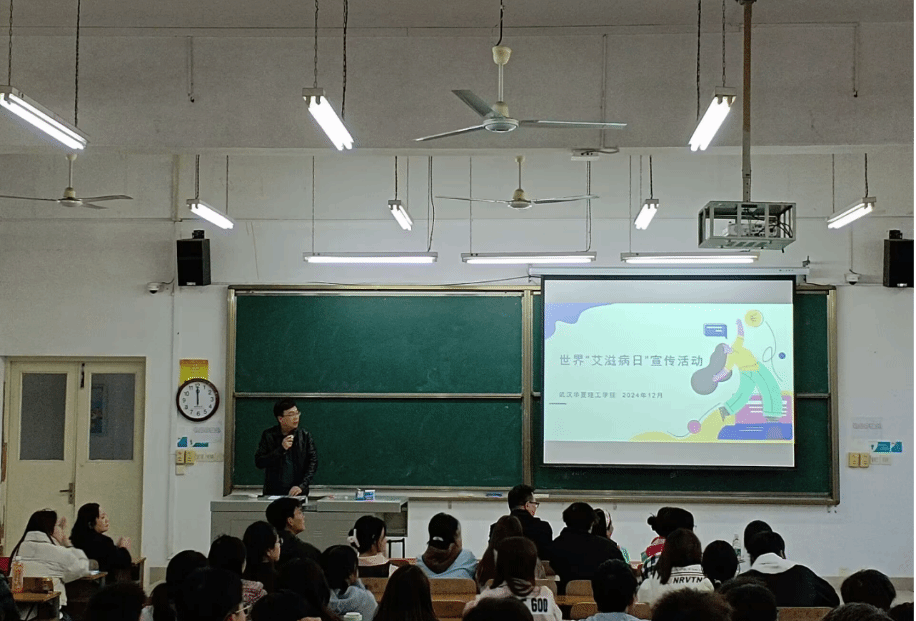 12月2日下午4时,为了积极响应第37个“世界艾滋病日”活动方案,beat365联合湖北省公共卫生临床中心(武汉市金银潭医院)、武汉为先社工在教学楼1-101举办了第37个“世界艾滋病日”宣传活动。活动由商学院党总支组织员杨洋主持,校青春同伴社、商学院心理健康协会承办,武汉市金银潭医院感染免疫科主任洪可、护士长刘莉,武汉市金银潭医院结核病科副主任医师聂琦,武汉为先社工工作人员,各学院心理健康指导老师,学生代表等近200人参加活动。