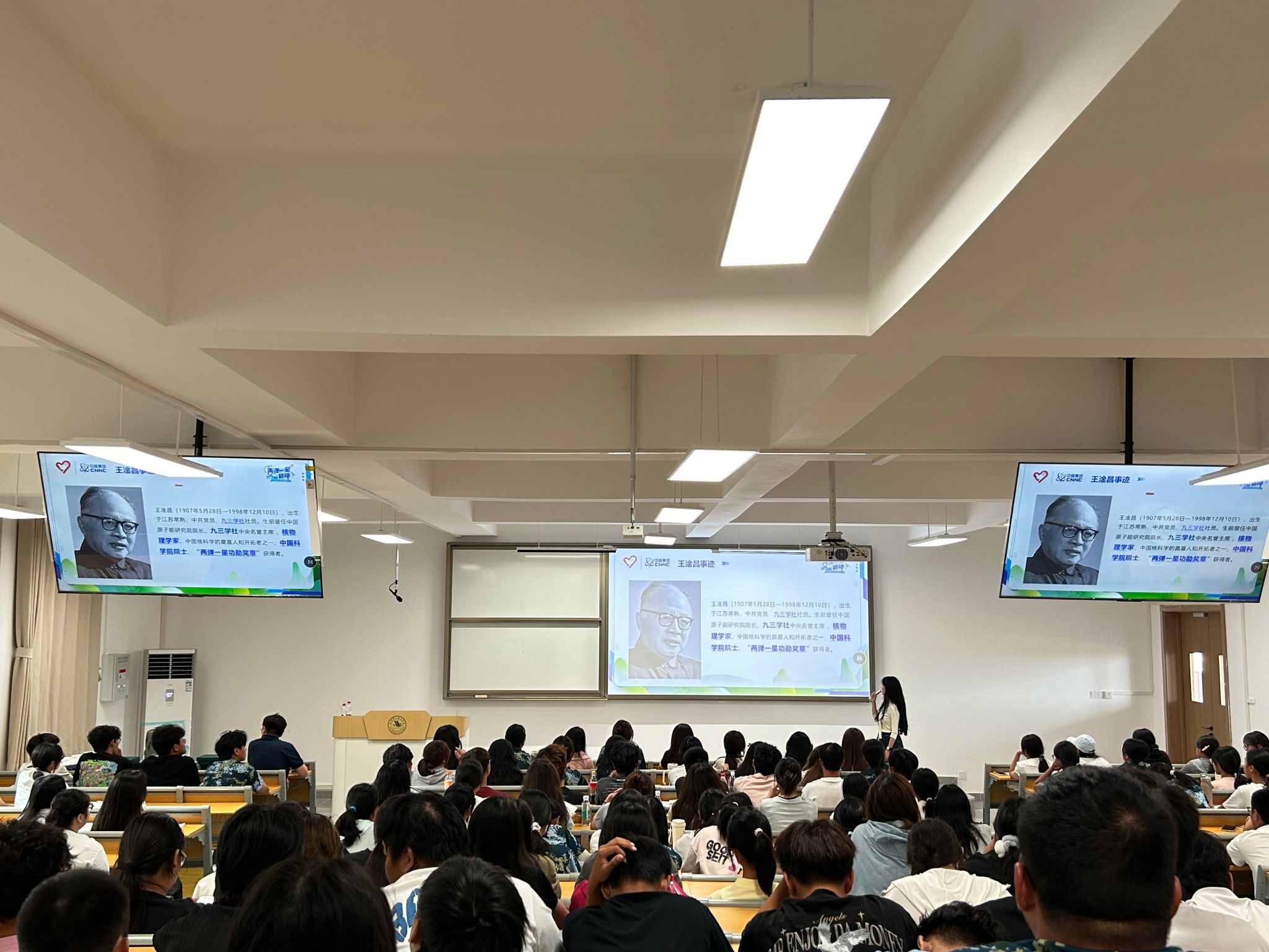 随后,周雨凡同志聚焦“两弹一星”元勋王淦昌、郭永怀的事迹展开讲述。她深情还原王淦昌隐姓埋名十余载,为核物理研究鞠躬尽瘁的执着;生动描绘郭永怀在空难瞬间以身体护佑科研资料,用生命诠释“科学报国”的壮烈。鲜活的人物、震撼人心的故事,让现场新生深受触动,不少同学认真记录下科学家们的名言与事迹细节。