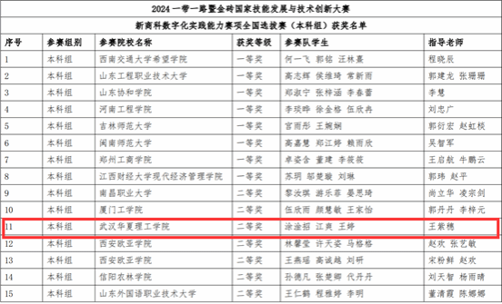 近日,2024第八届“一带一路”暨金砖国家技能发展与技术创新大赛之新商科数字化实践能力赛项的全国选拔赛圆满结束,我院大数据与电商系通过校内选拔的三支队伍在比赛中表现优异,荣获二等奖1项、三等奖2项,其中由涂淦招、江爽和王婷组成的队伍成功晋级全国总决赛。