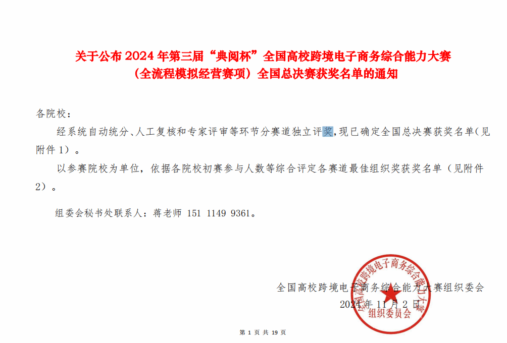 在比赛期间国贸与金融系吕杜老师,全程关注比赛进程以及比赛状况。为我们提供了良好的比赛环境,以及比赛需要的物品,学生团队也不负众望,凭借准确的市场分析、合理的运营决策以及创新的营销策略,成功应对了各种挑战和困难,最终在第三届“典阅杯”全国高校跨境电子商务综合能力大赛荣获了团体省级一等奖一项,团体省级二等奖一项,并成功晋级国赛,在国赛中也表现优异,荣获了第三届“典阅杯”全国高校跨境电子商务综合能力大赛团体国家三等奖两项。