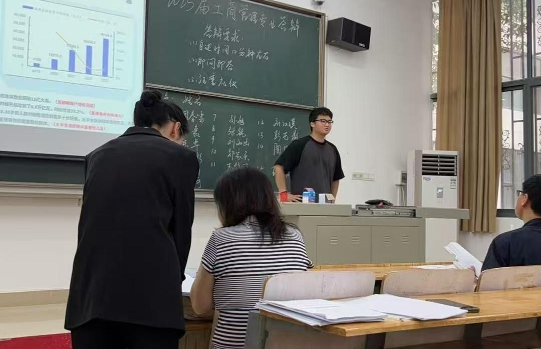 本次答辩工商管理专业教师团队全程参与,商学院院长程艳霞、督导办主任潘连柏也参与此次答辩工作,为答辩质量严格把关。答辩现场秩序井然,环节紧凑,从学生陈述到评委提问,每个流程都严谨规范,充分彰显了学院对本科毕业论文答辩工作的高度重视。