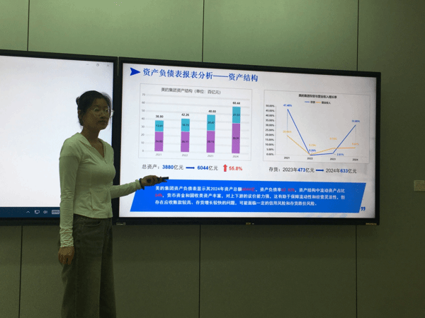 在全国商业精英挑战赛会计与商业管理案例竞赛中,我们团队以美的集团为研究对象,开启了一场与财务大数据对话的探索。面对复杂的财务信息和瞬息万变的市场环境,我们利用Python爬取美的集团2022-2024年的核心财务数据,并通过Power BI构建动态可视化模型,直观呈现资产负债结构、现金流量趋势等关键指标。此外,我们团队还借助AI财经大数据平台,深入分析了宏观经济周期与行业竞争态势,精准把握市场脉搏。在财务预测环节,我们则利用万思平台对美的集团2025-2027年的营收、成本及费用进行科学预测,最终我们的作品成功晋级全国总决赛。这一成绩的背后,离不开吴小娟老师的悉心指导——从财报解读的细节纠偏到行业趋势的全局视角,她始终以深厚的专业素养引导我们兼顾理论深度与实践价值。