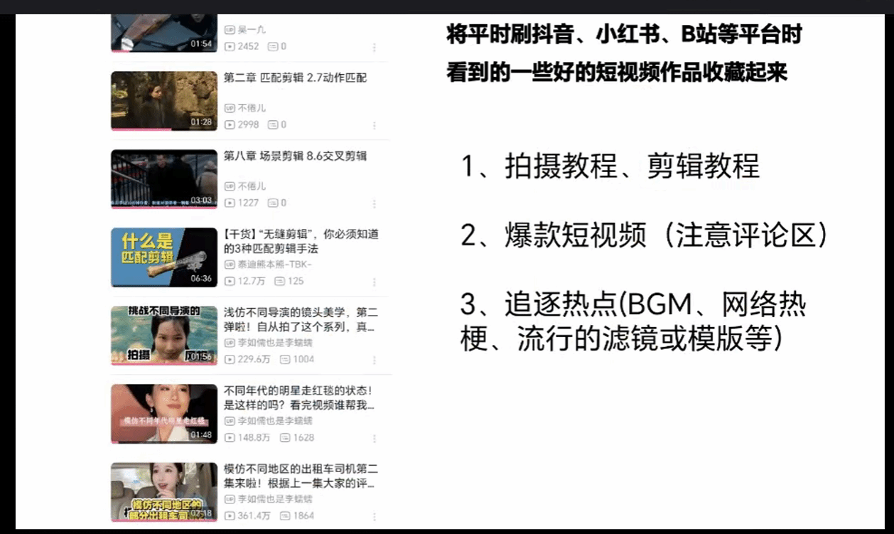 除了技术层面的打磨,杨老师强调“内容敏感度”。优秀的短视频创作者需建立“素材库思维”,平时应注重积累网络热梗、创意灵感与实用技巧。“小红书的拍照模板、B站的剪辑教程、各大平台的爆款案例,都是值得深挖的学习资源。”她建议同学们分类收藏优质内容,定期复盘爆款视频的选题逻辑与呈现方式,培养对热点事件的敏锐嗅觉。“热点是流量的催化剂,但追热点不能盲目,要结合自身定位与受众需求,找到契合的切入点。”杨老师以近期热门话题为例,解析了如何将热点与内容自然融合,避免生硬植入。