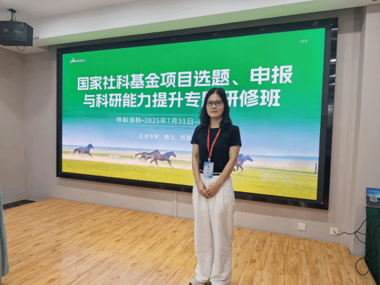 7月31日至8月4日,商学院国贸与金融系吕杜老师参加在呼和浩特举行的由北京卓越国培教育科技发展中心主办的“数智・进阶・突破:基金申请成功之路——国家社科基金项目选题、申报与科研能力提升专题研修班”。