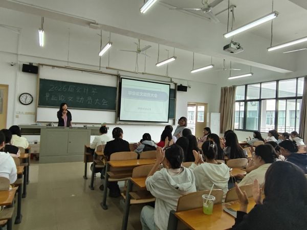 为帮助2026届应届毕业生全面掌握毕业论文写作要点,清晰把握时间进度,切实保障论文写作质量与效率,财会系于10月17日中午在2-401召开毕业论文动员大会,大会由系副主任徐玄玄老师主持,毕业论文指导教师及全体2026届财会系会计学专业应届毕业生参会。