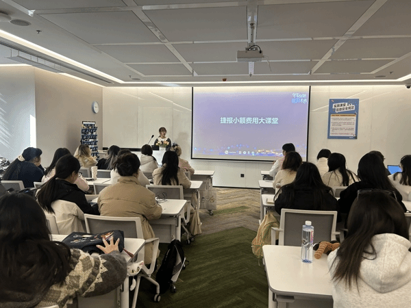 随后,正式进入授课环节。陈老师将重点聚焦于百胜捷报财务共享系统,从捷报单据、发票介绍,到费用报销单据提报等实务操作,都进行了细致入微的讲解。不仅如此,她还深入剖析了费用报销单据通用审核标准,涵盖消费事由、范围、发票及附件审核等多个关键方面。为了让同学们更好地理解,陈老师结合百胜的实际案例,将抽象的理论知识转化为生动具体的实践场景,使同学们能够直观深入地掌握财务共享费用稽核岗的实际操作流程与审核要求。