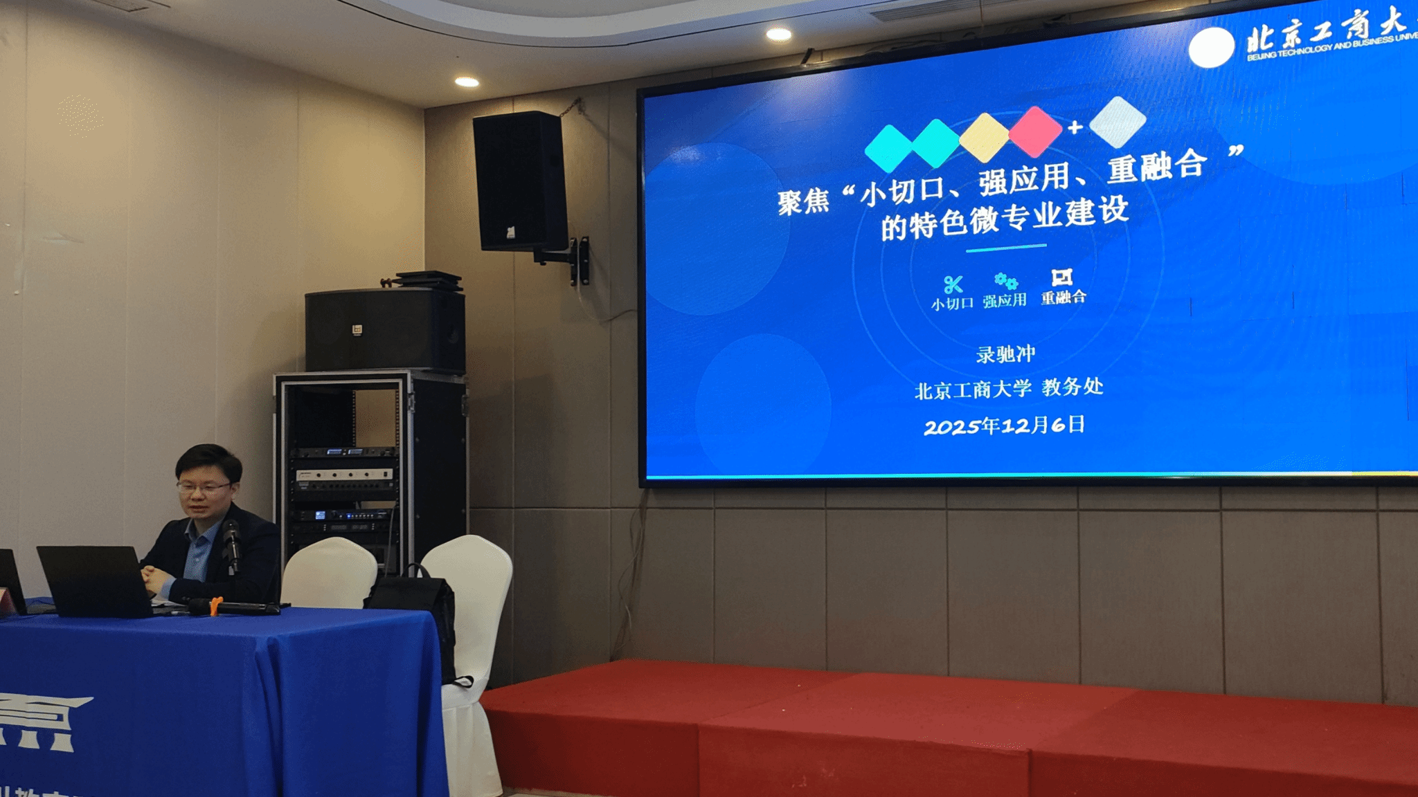 与会专家从高等教育新形势出发,阐述了一流专业内涵建设与结构优化的策略,详细解读了微专业在促进学科交叉、响应产业需求方面的具体做法。在专题研讨中,中国农业大学李辉教授以人工智能微专业为例,系统介绍了基于OBE理念的微专业课程设计与运营管理机制,为各专业探索模块化、项目化教学提供了框架。北京工商大学录驰冲教授以“小切口、强应用、重融合”为线索,分享了该校“人工智能+”微专业的建设实践,其强调的跨学科融合与实战导向,对电子商务专业推进“技术+商业”复合型课程设计具有重要借鉴意义。