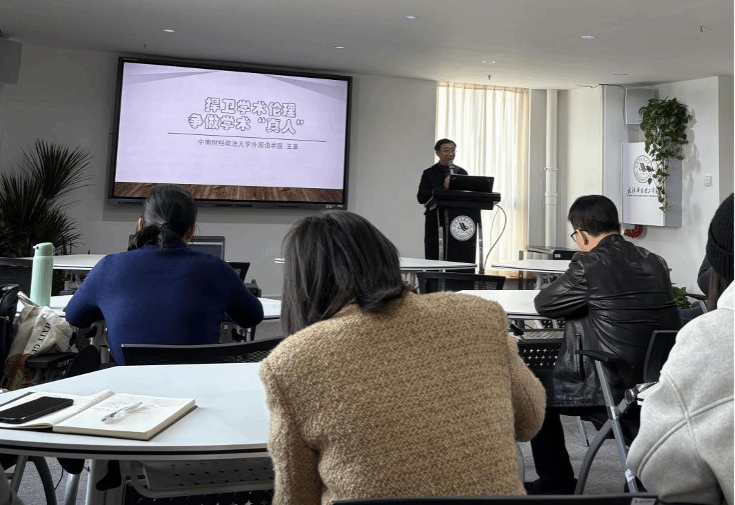 临近年终考核的关键时期,为强化学术规范意识,营造风清气正的科研环境,商学院青年教师、科研骨干共同参与了教师发展中心组织、王革教授主讲的“捍卫学术伦理,争做学术‘真人’”专题讲座。
