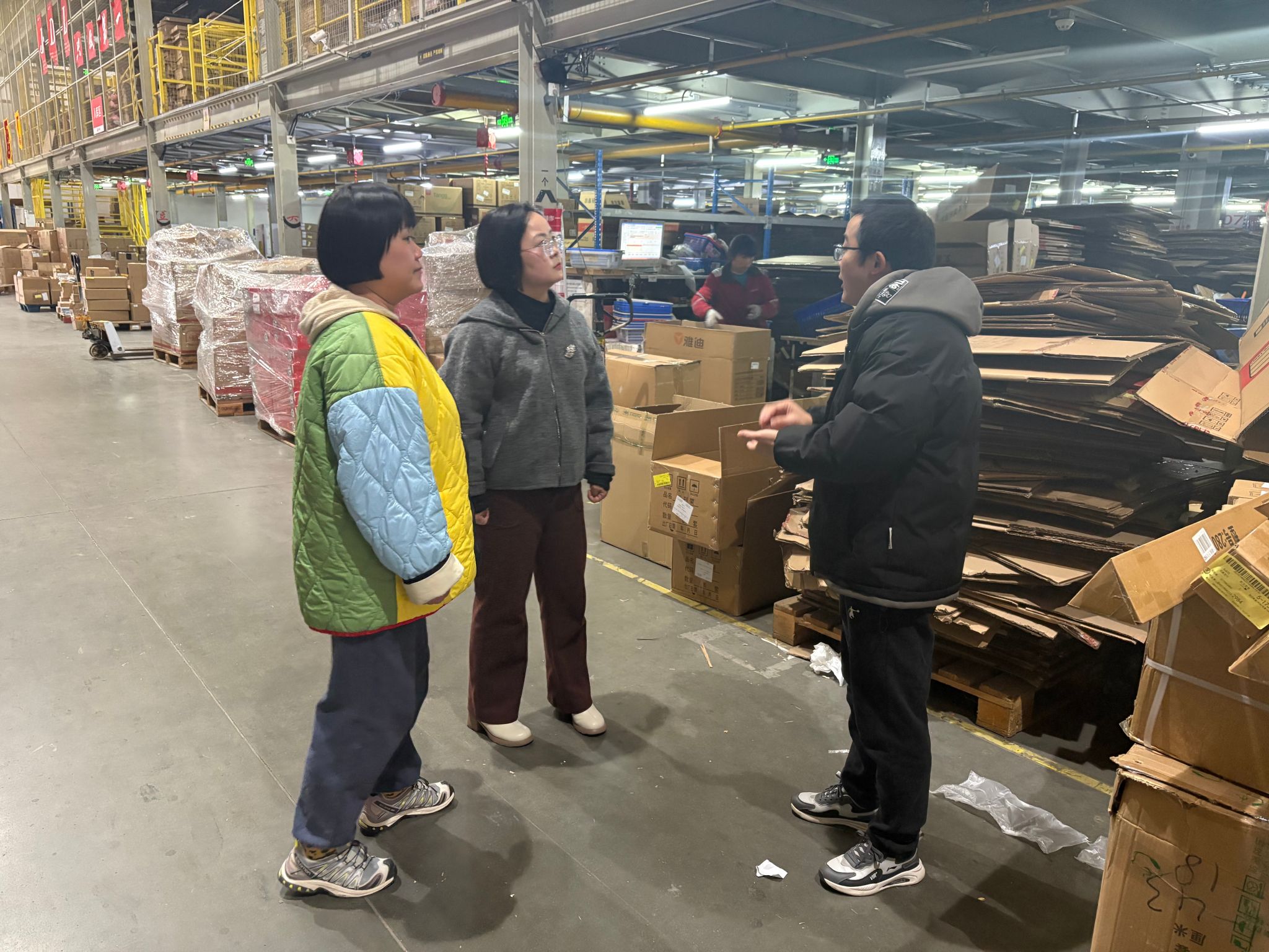 在走访过程中,京东物流相关负责人详细介绍了公司的业务范围、运营模式以及在行业内的领先技术和创新实践。双方围绕实践教学基地的建设模式、人才培养方案、学生实习就业等方面展开了广泛而深入的讨论。运营管理系教师团队就专业课程设置、学生实践需求等内容与企业方进行了充分交流,希望通过与京东物流的合作,让学生在真实的企业环境中锻炼实践能力,更好地将理论知识与实际操作相结合。