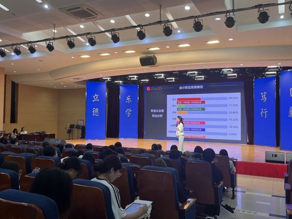 在人工智能技术重构全球产业格局的浪潮中,财会领域正经历颠覆性变革。2025年5月8日,由商学院财会系主办的《AI时代——会计专业学生职业发展前瞻》专题研讨会在综合楼报告厅隆重举行。知名财税战略顾问严金凤女士作为主讲嘉宾,为近三百名即将迈入职场的财会学子勾勒出智能时代的职业发展蓝图。