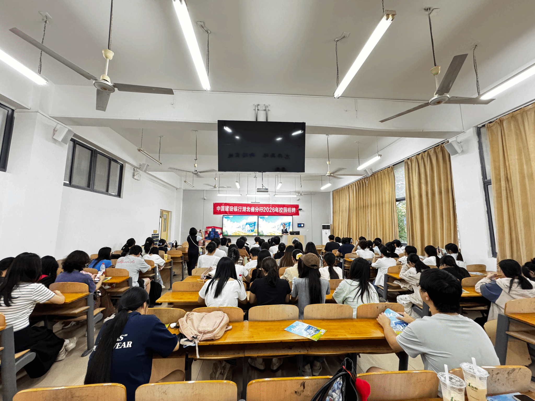 宣讲会上,湖北建行的代表不仅详细阐述了公司的福利待遇,包括具有竞争力的薪资水平、完善的保险福利体系、丰富多彩的员工活动以及广阔的职业发展空间等,让在场的每一位学子都感受到了企业的温暖与关怀。他们还积极与同学们进行互动,耐心解答了大家关于职业发展、岗位需求等方面的诸多疑问,让同学们对未来的职业规划有了更加清晰和明确的认识。同学们纷纷表示,通过此次宣讲会,他们对湖北建行有了更加全面和深入地了解,也对自己的职业道路有了更加明确的定位。他们被企业的文化、发展前景以及人才培养机制所吸引,纷纷表示愿意加入这个大家庭,共同创造更加美好的未来。