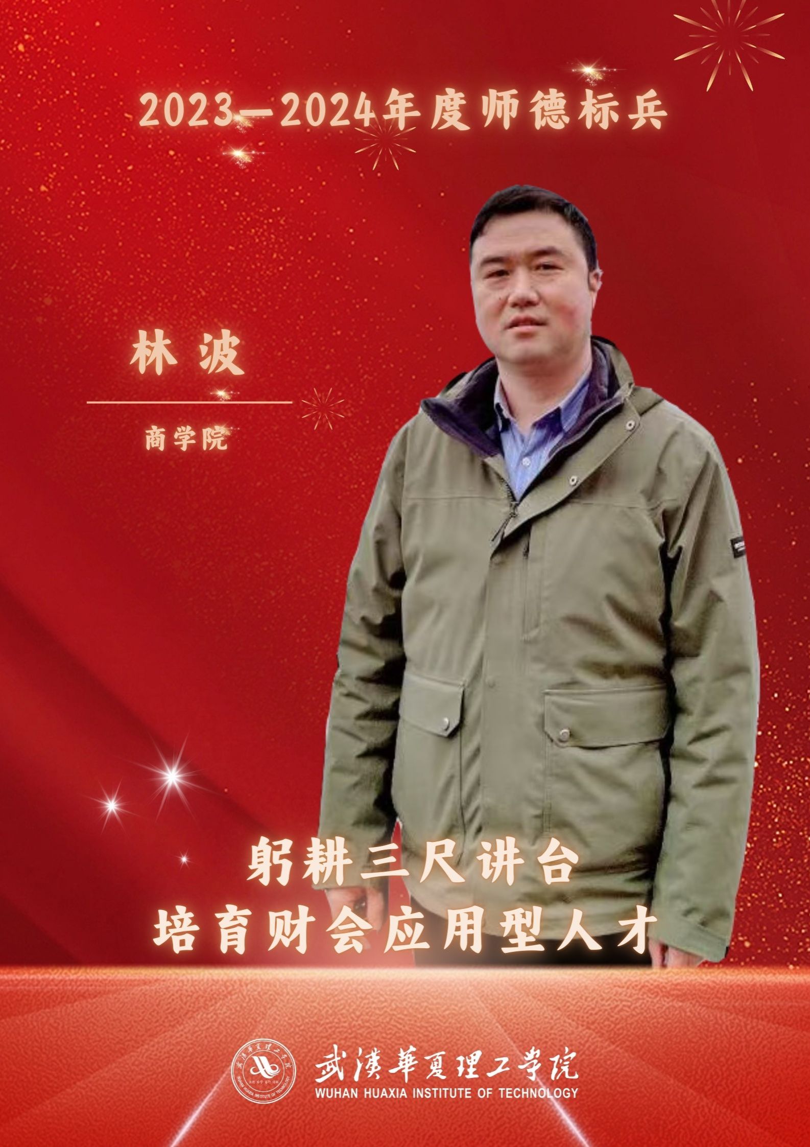 林波,男,中共党员,商学院财会系系主任,副教授。他潜心教书育人,推进“以学生为中心”的教学改革,积极拓展校企合作,先后引进了厦门科云等业内优质企业,探索开展面向行业产业的联合教学,为推动产教融合、落实学生高质量就业奠定基础。他党建、业务双融双促,带领党员教师主动承担“智能财务”专业建设任务,推动湖北省税务局“税校联建共建”活动,取得了较好的育人效果和社会影响。曾获学校课程思政教学设计大赛三等奖、教学质量优秀奖等,主讲课程《高级财会会计》被认定为省级一流课程。曾获学校“优秀共产党员”“优秀教职工”等荣誉。