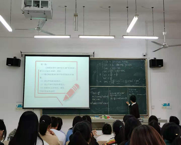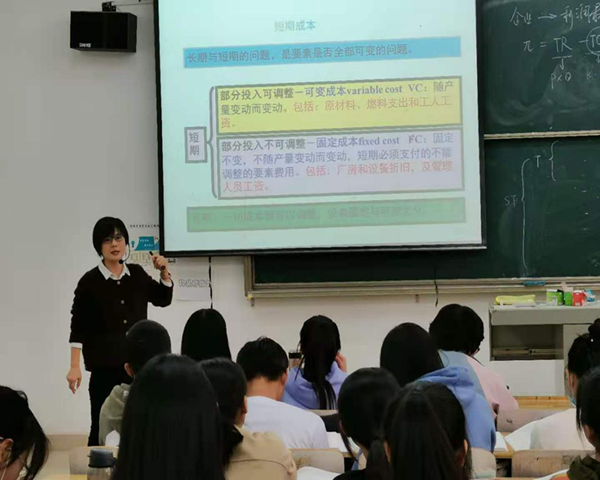 “吕杜老师的课真的很有意思,她连讲一个笑话都是满满的知识点”这是学生对吕杜老师课堂的评价,笔者这次走进课堂,也被课堂上活跃轻松的气氛所吸引。本节课吕杜老师讲解的是生产者行为理论部分,从企业责任到生产函数,从短期到长期,从经济分析到会计分析,从理论到实践,从脑筋急转弯到案例分析,从启发到讨论,老师与学生的距离在互动中不断被拉近,以学生的视角将晦涩的理论表达出来,学生们都十分兴奋和积极,沉浸在微观经济学之旅之中。