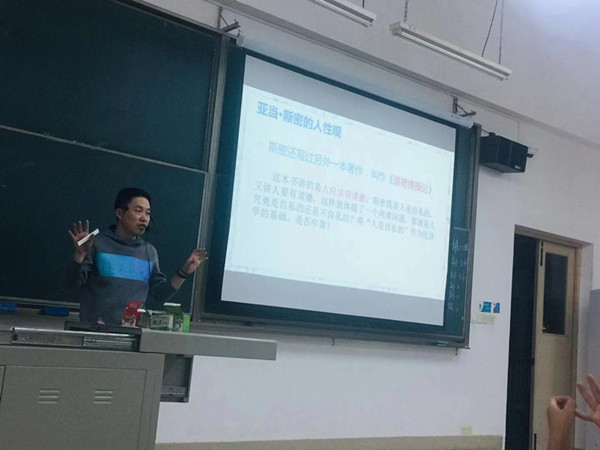听完课以后在与李老师的交流中,我充分感受到李老师的课有四个亮点:一是立意新,课程以各省经济的优势、特色为立意点,不仅介绍先进的经济模式,如江苏的开放型经济。而且介绍当地的特色经济,如青海的旅游经济。二是见识广,历年发生的经济学事件,热点问题都可以成为课程的内容,中国省份所呈现的经济特色、文化特色等纷纷呈现。三是形式活,首先是内容呈现形式活,既包含了经济学经典著作的解读,如亚当斯密《道德情操论》,也包含了学生关注的经济学热点事件,比如如何解决春运购票难问题。其次是课堂展示活,在介绍国内省份或城市的时候,如果有学生“自己”家乡的时候,李老师会首先提前沟通,让这位同学来对自己的家乡做一个“推荐”,这种展示极大的提升了同学们的自豪感和学习兴趣。四是爱祖国,课程展示了中国各省份经济等基本概况,了解了各项世界文化遗产在中国的情况,让同学们对祖国的大好河山,肃然起敬。