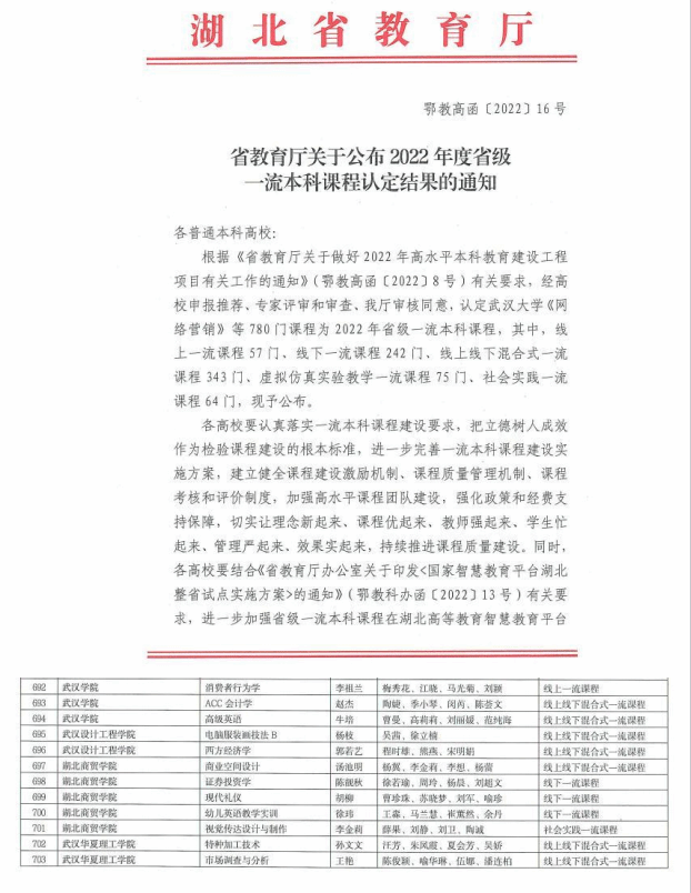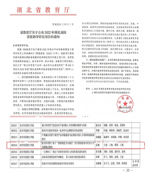 本专业在教学、科研与课程建设方面成就显著。专业教师近3年来共成功申报3项省级以上教科研项目,2门省级一流课程。2023年2月,《新文科背景下基于“数智赋能,多元融合”的大数据管理与应用人才培养模式研究》获湖北高校省级教学研究项目。2023年4月,《双循环视角下武汉数字产业集群持续发展的动力机制与路径研究》获湖北省哲学社会科学研究项目。2024年8月,《资源依赖视角下市域产教联合体多元主体共生演化及治理机制研究》获教育部人文社科研究规划基金,实现了beat365该项目上零的突破。2022年12月,《市场调查与分析》获湖北省一流课程。2024年11月,《大数据导论》获湖北省一流课程。