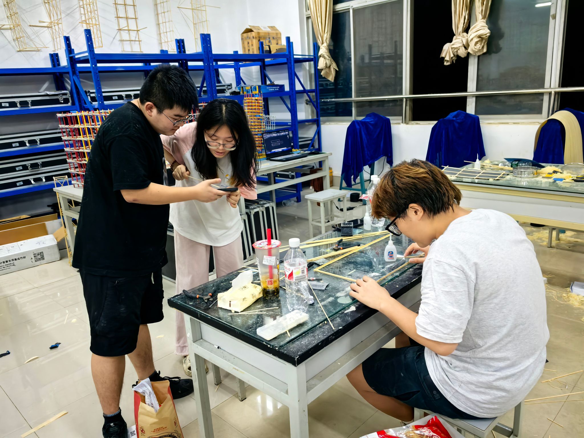 盛夏的江城,热浪滚滚,室内的温度不断攀升。第十二届湖北省大学生结构设计竞赛将于7月上旬在湖北理工学院开幕,我院参赛学子毅然选择了“暑期留校”。在弥漫着胶水与木屑气息的竞赛实验室内,他们正经历着一场与高温较量、与精度较真、与实践对话的淬炼之旅。