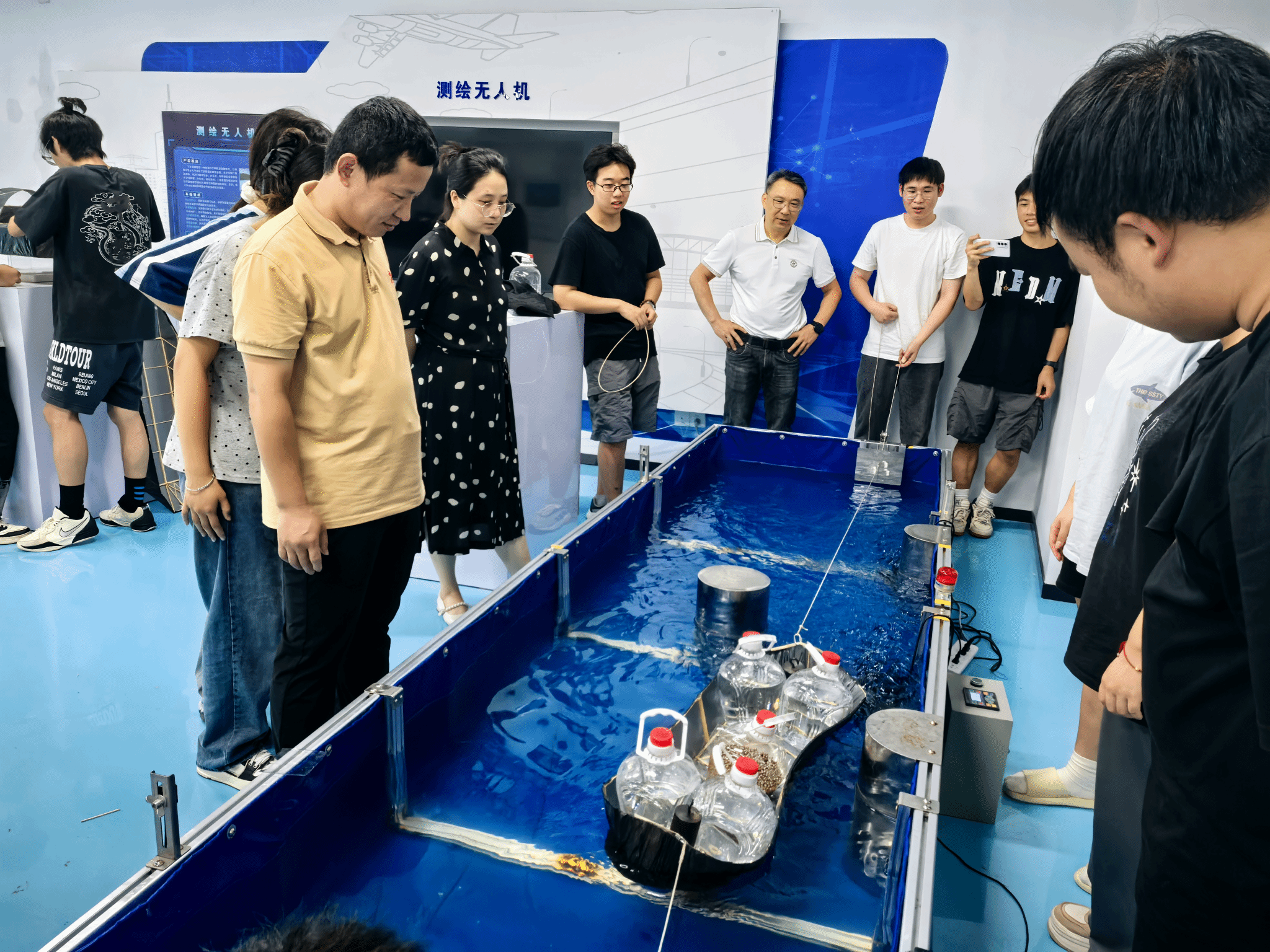 来访师生团队携带多个“乌篷船”模型在我院实验室水槽中进行试运行加载。针对加载中出现的局部变形过大、船舱漏水过多等问题,靳帮虎老师提出了针对性优化建议,朱红玉老师则从结构优化可行性方面给予了修改意见。双方师生围绕备赛问题进行了深入交流探讨,我院学生也从交流探讨中获益良多。靳老师还对两校学生在备赛期间的共性问题和模型细节处理提供了精准指导。