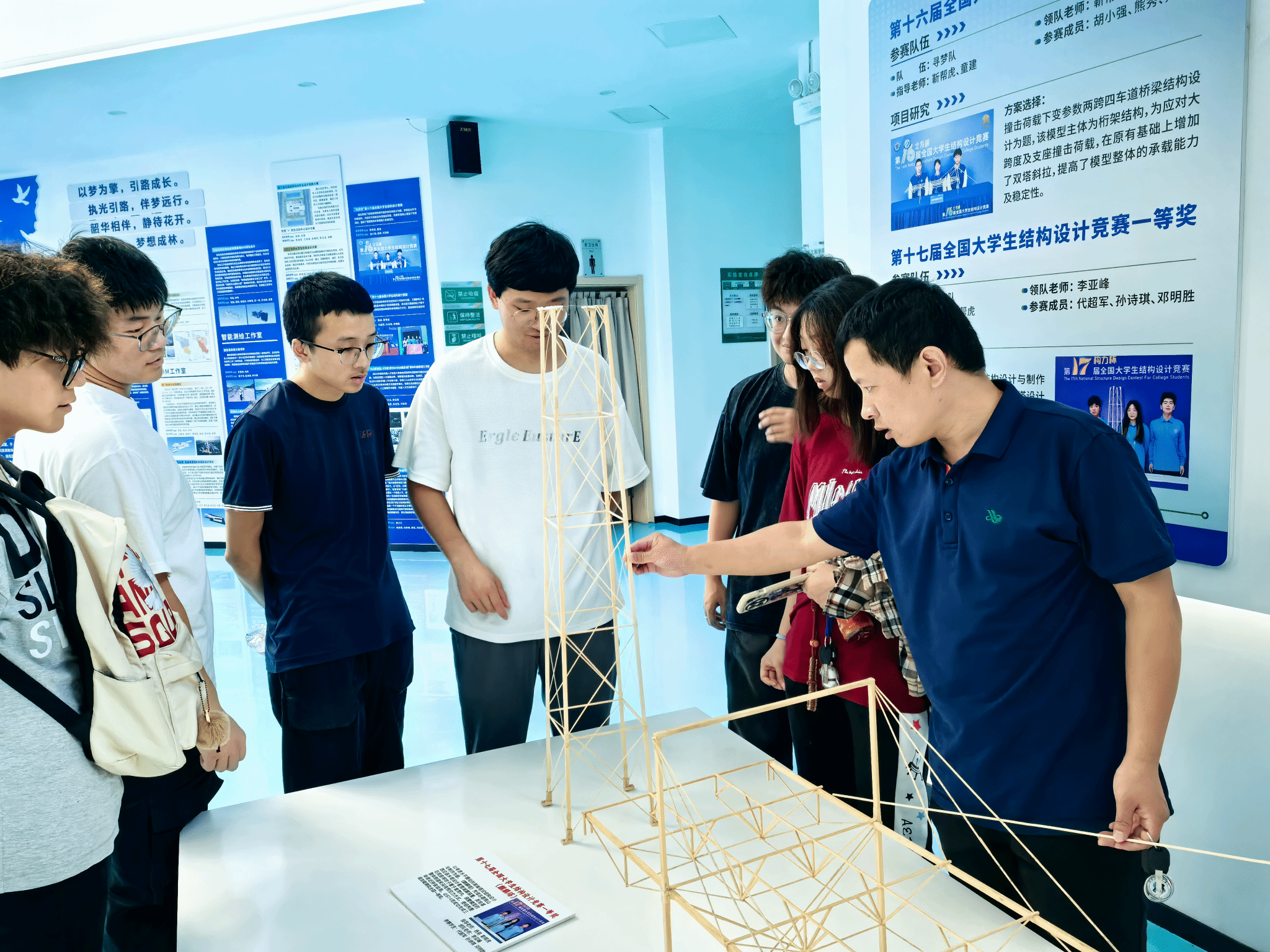 一直以来,学院高度重视学生专业竞赛,秉持 “以赛促学、以赛促教、以赛促建”的理念,在数字化建筑的大趋势下,致力于培养建筑行业数字化人才,着力提升学生的创新思维和专业高精软件实操能力。经过不懈努力,学院创新创业教育成果显著,连续荣获第十六、十七届全国大学生结构设计竞赛总决赛全国一等奖,以及第十、十一届湖北省大学生结构设计竞赛一等奖,充分彰显了学院在专业竞赛领域的卓越实力和育人成效。此次与武汉生物工程学院的交流活动,将进一步推动我院结构竞赛的发展,激励更多学生在专业竞赛的舞台上展现自我、追求卓越,为学院的教育教学改革和学科建设注入新的活力,也为培养更多适应时代需求的高素质建筑人才奠定了坚实基础。