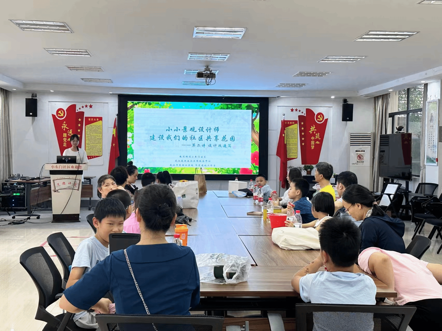 2024年7月20日上午,由华夏建规工作室精心策划的《小小景观设计师,建设我们的社区共享花园》系列活动第二讲在武汉市小东门社区党群服务中心正式开讲。本次活动由工作室指导老师向添媛牵头,城乡规划22级学生向贻锦主讲, 21级叶文杰与23级赵红云两位担任助理小老师,共吸引了15组亲子家庭积极参与。