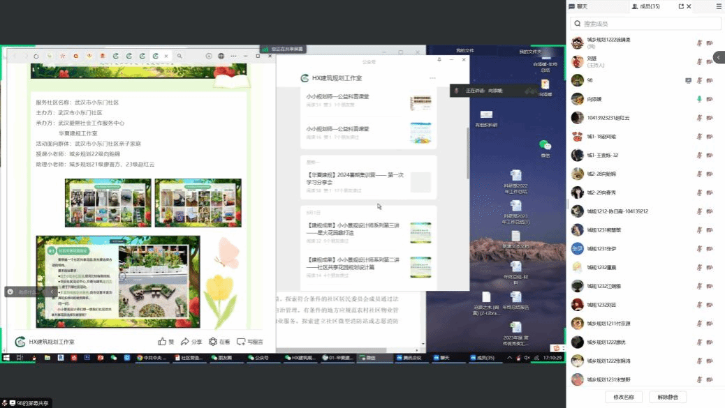 在五位同学分享结束后,组织部指导老师向添媛对同学们这几周的学习提出肯定,接着提出最近展开效果比较好的一系列社区小小规划师公益课堂活动,希望同学们能够踊跃参加。随后对小小规划师建设社区花园等活动进行了一些讲解,同时也对华夏建规工作室公众号小小规划师栏目的版面制作提出了表扬。最后向添媛老师向同学们介绍了关于加强和完善城乡社区治理方面新颁布的实施条例进行讲解,希望同学们加强对于城乡社区治理方面内容的了解。