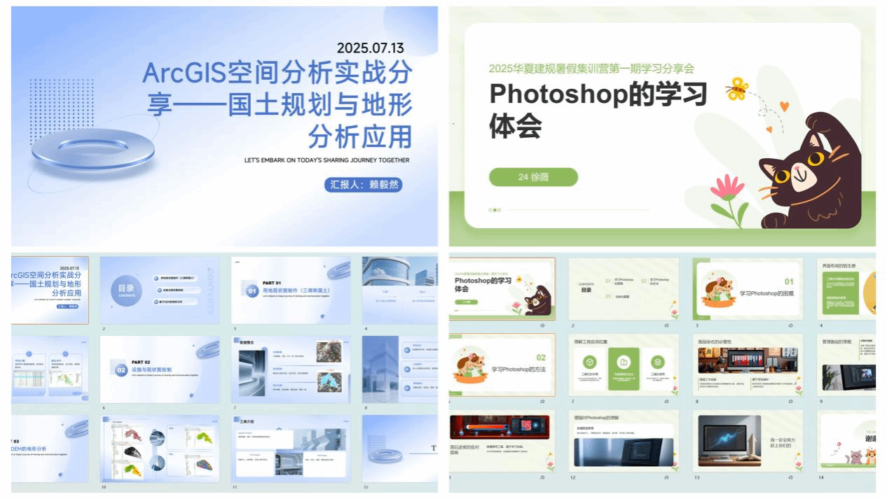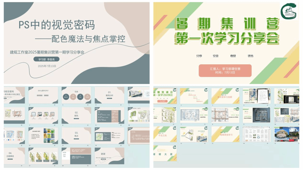 24级的谭佳慧同学一一展示了自己的学习成果,回顾了自己在彩平图制作中“细节处理不到位”、“总体效果不和谐”等不足之处,要求自己在学习中要解决这些问题,紧接着又展示了自己在韧性城市项目以及数字思政赋能建设调研暑期社会实践队中的成果。