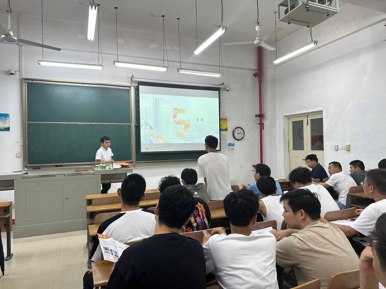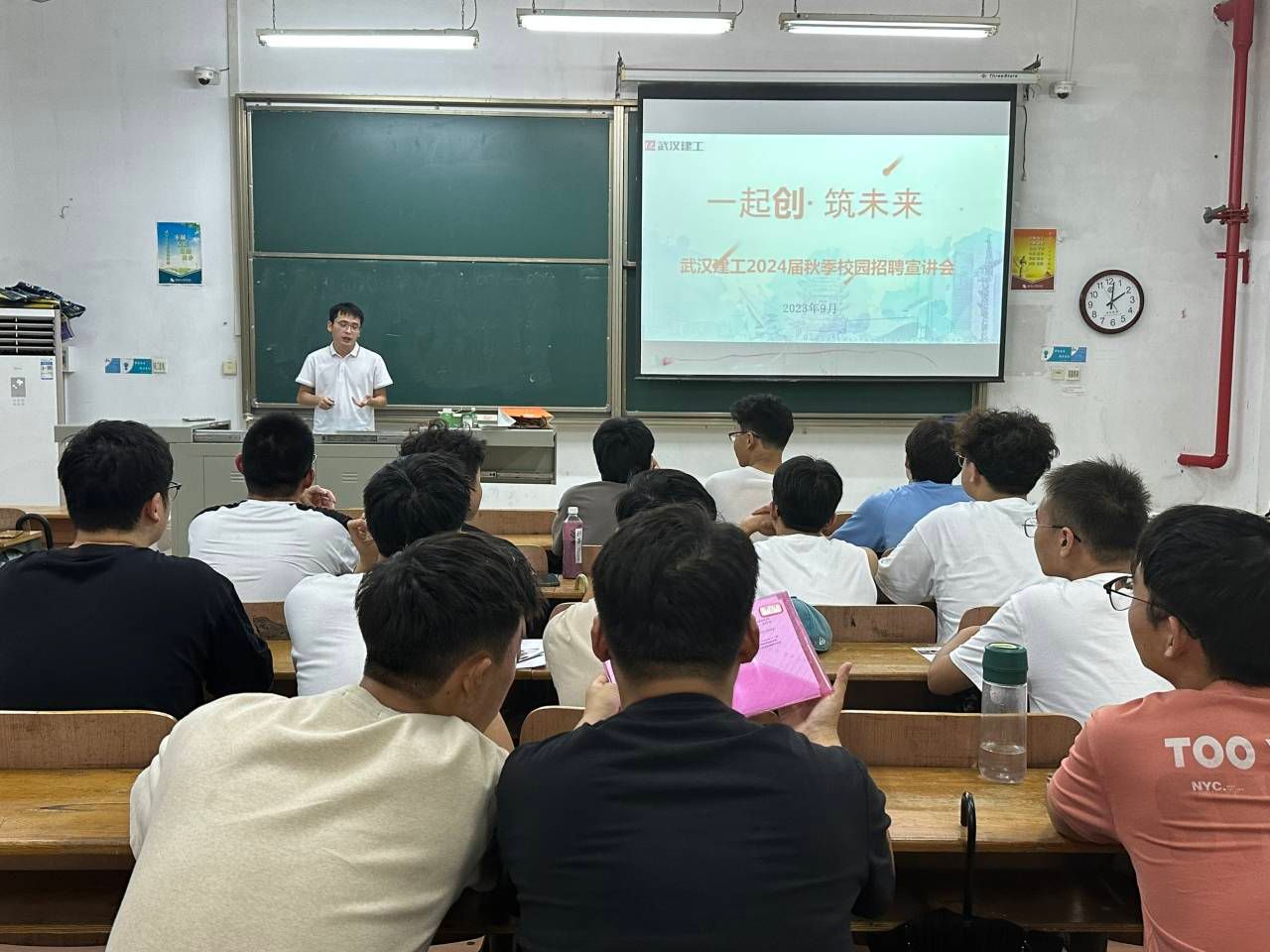 2023年9月12日下午2点,武汉建工(集团)有限公司在学校教学楼1-106教室举行宣讲会,党总支组织员吴振琦、毕业班辅导员昌仪琳和来自土木工程、工程管理等专业的毕业生参加。