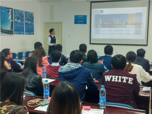 校园招聘会上,冯小辉经理介绍了公司在2016-2018年期间招聘的岗位及人数需求、未来两年内即将开拓的市场项目、现行的各项薪酬福利和职业规划路径等内容,他指出集团上市以后,不断开拓新市场,对人才的需求量很大,希望能够从应届毕业生选拔优秀学生加入企业。他用“您抽烟吗?”这类轻松主题的真实故事,亲切展现了企业文化。