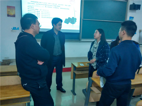 2016年11月16日下午2点半,武汉农尚环境股份有限公司人力资源部王康妮一行4人到土木建筑工程学院招聘应届毕业生,并与院长杨和礼教授、党总支书记陈伟洽谈校企合作事宜。