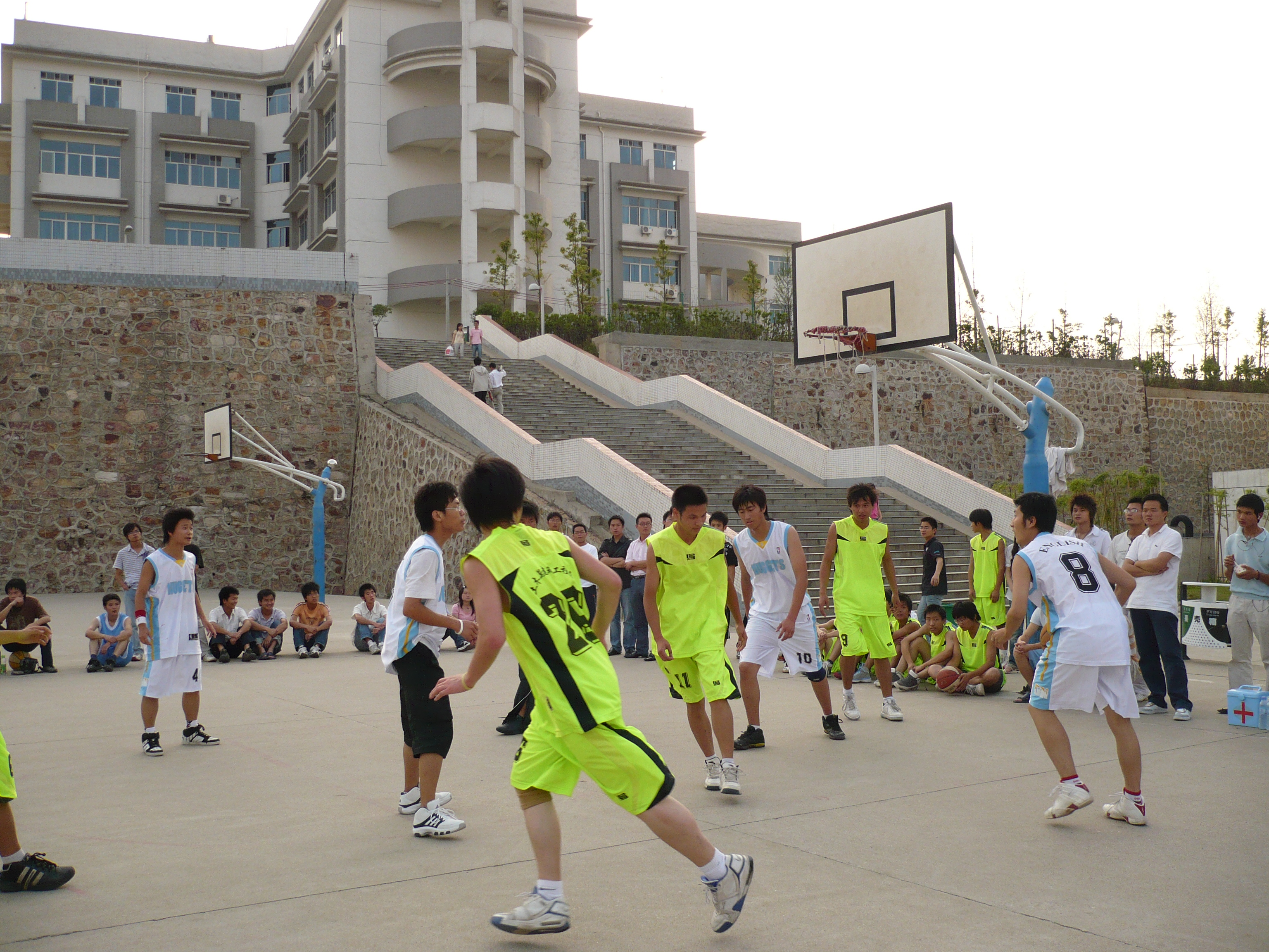 5月11日下午5点,我系与外语系篮球比赛在一食堂对面篮球场上拉开战幕。