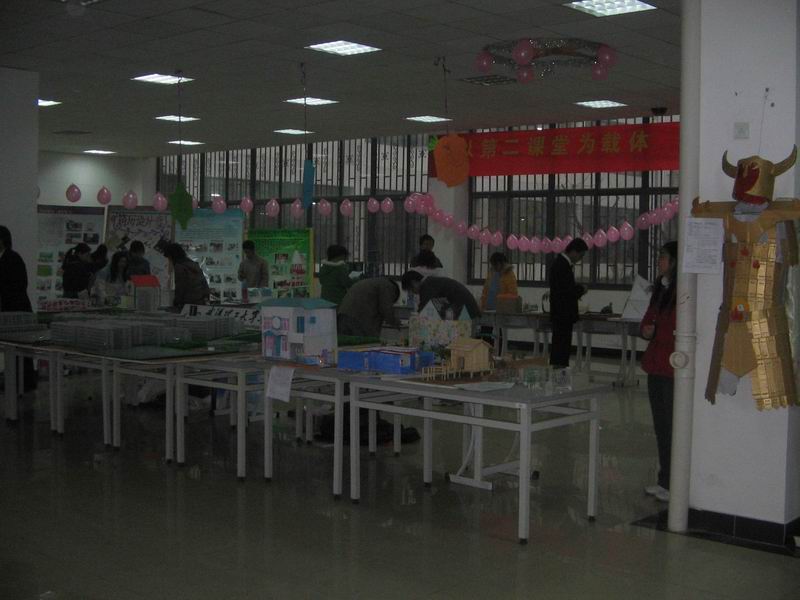 当外面一片漆黑,当闹钟五点的铃声响起,我们没有象往常那样留恋温暖的被窝。不是因为睡好了,只因今天非比寻常。迅速洗漱完毕,便开始了一天紧张的筹备工作。风忽呼的刮着,有些许的刺骨,望着校园还被宁静笼罩,我们没有抱怨,相反喜悦之情在昏黄的路灯照耀下溢于言表,想着一个多小时后同学们看到那教学楼大厅突如其来的惊喜,想着那凝聚了我们辛勤汗水的精品模型,想着校领导及老师们的赞美,你说我们能不高兴吗?