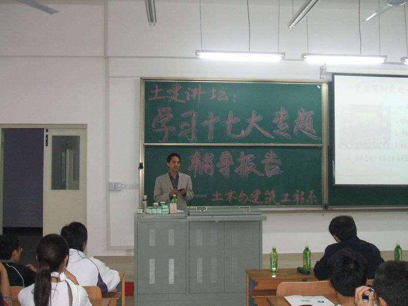 10月18日晚,我们有幸聆听了人文与艺术系党总支书记、院两课教研室主任胡贵章副教授为我系07级全体学生作了一场精彩的学习十七大精神辅导报告。