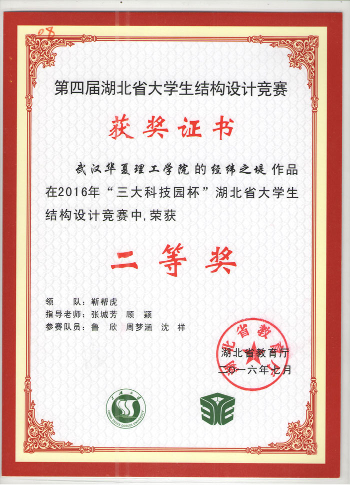 “三大科技园杯”第四届湖北省大学生结构设计竞赛团体二等奖(鲁欣)