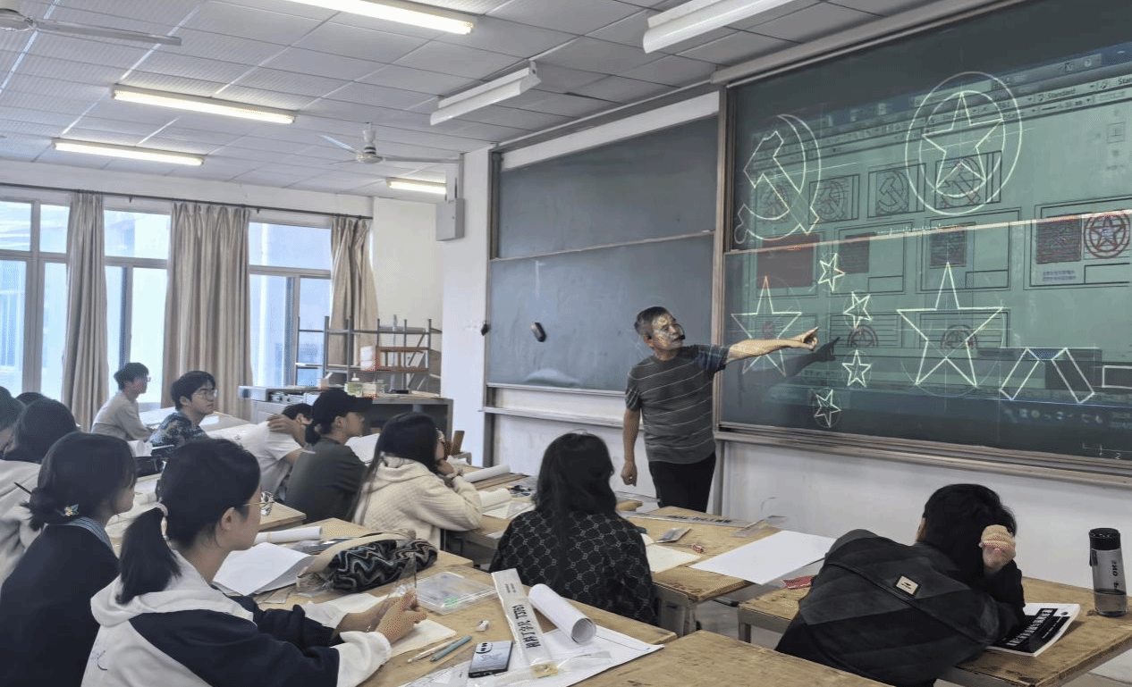 密教授首先对上一堂课同学们完成的国旗五星以及八一军旗的作业进行了细致点评,指出了学生在绘制过程中出现的错误及改进方法,展示了部分完成较好的学生作业,鼓励大家继续努力提高制图技能。