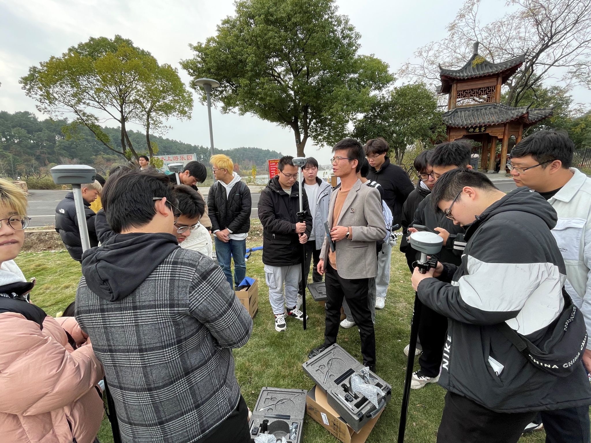 下午,培训活动进入实操阶段。学生们在技术人员的指导下,进行了地形图测量及RTK(实时动态差分定位)放样操作。通过实际操作,学生们不仅掌握了地形图测量的基本方法和步骤,还学会了如何运用RTK技术进行精准定位。实践过程中,学生们分组协作,相互学习,共同进步,现场气氛热烈而有序。