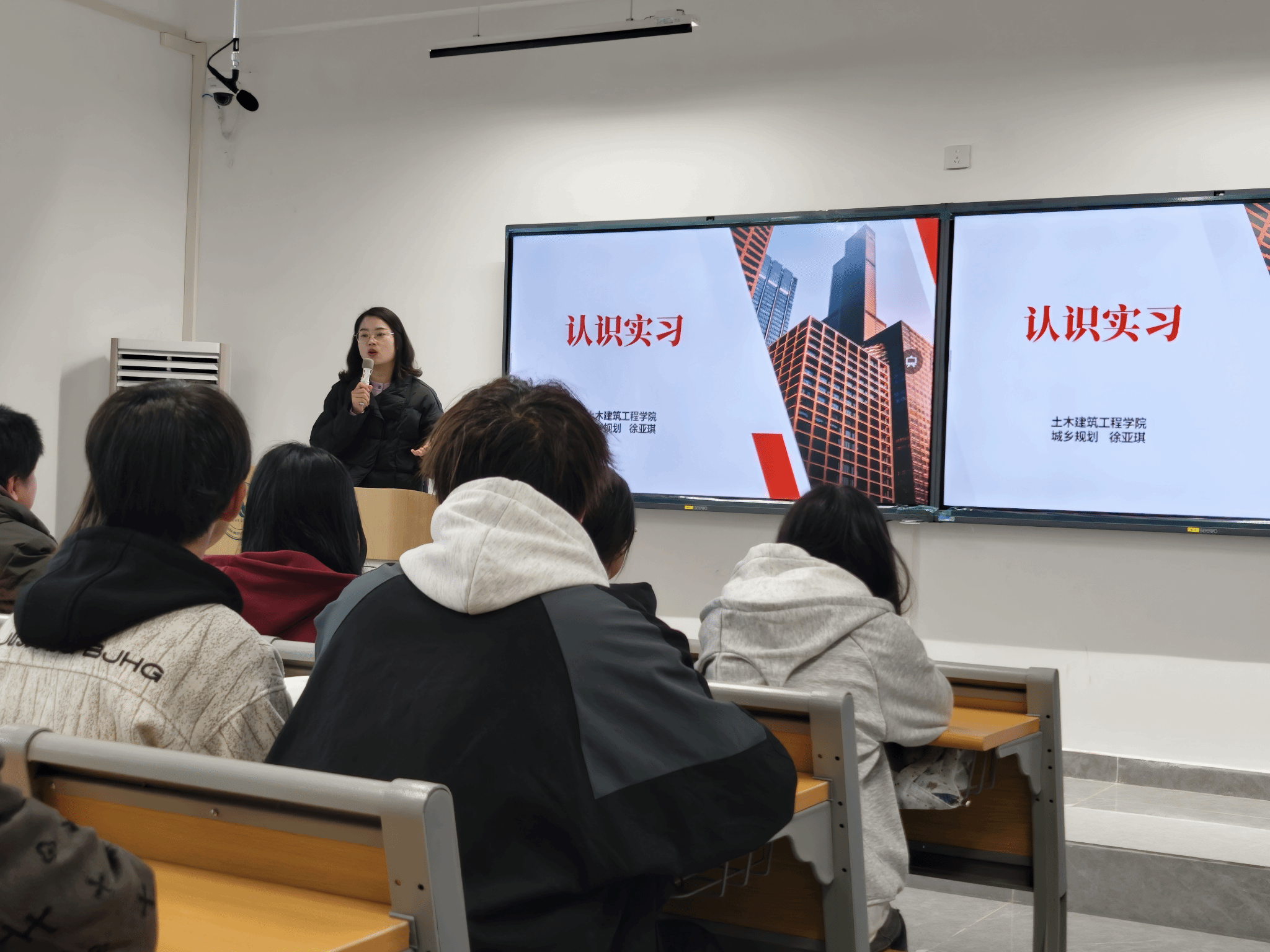 11月21日上午10时20分于教学楼A302,土木建筑工程学院2025级城乡规划专业迎来了本学期的首次实习动员大会。此次认知实习活动的动员会议由土木建筑工程学院副院长徐亚琪亲自主持,郝翠丽与吴振琦老师协同进行补充,向刚步入大学校园的2025级新生详细介绍了即将开始的认知实习课程。